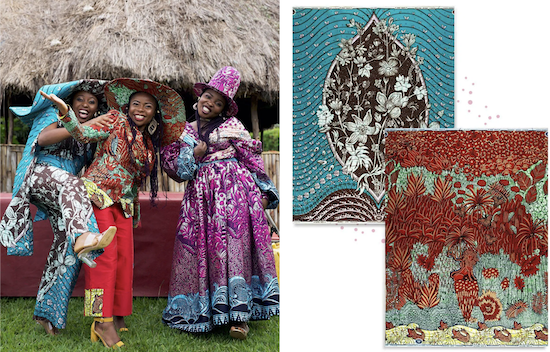 The collection is made up of five printed super-wax fabric patterns in bold, bright patterns, created using the old techniques of wax printing. The fabric designs pay tribute to the vagina and the natural beauty of the Congo region. Profits from the sale of the collection will be donated by Vlisco to the City of Joy.