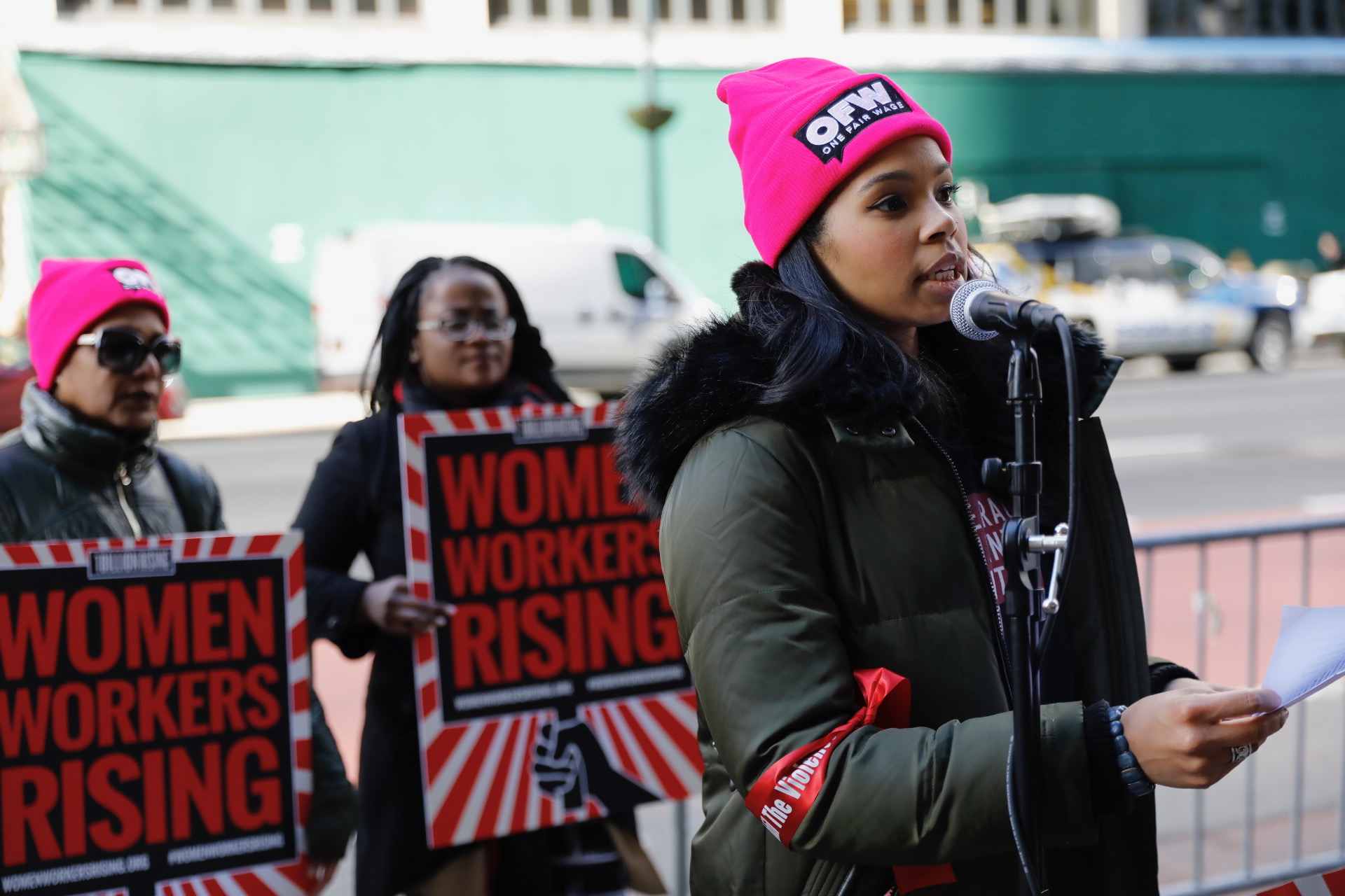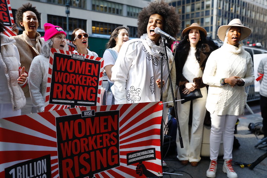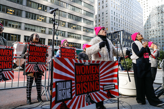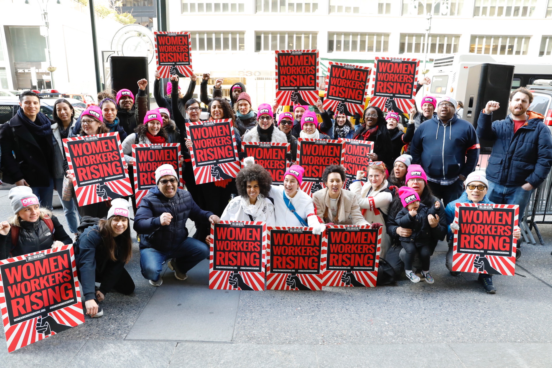 It is the first in a series of WOMEN WORKERS RISING mass self-defense actions, organized by One Billion Rising and One Fair Wage. In New York, restaurant workers are primarily women of color who suffer from three times the poverty rate of workers in non-tipped industries. Because restaurant servers have to rely on customer tips to pay their rent and feed their families, these women endure the highest rates of sexual harassment in any industry.