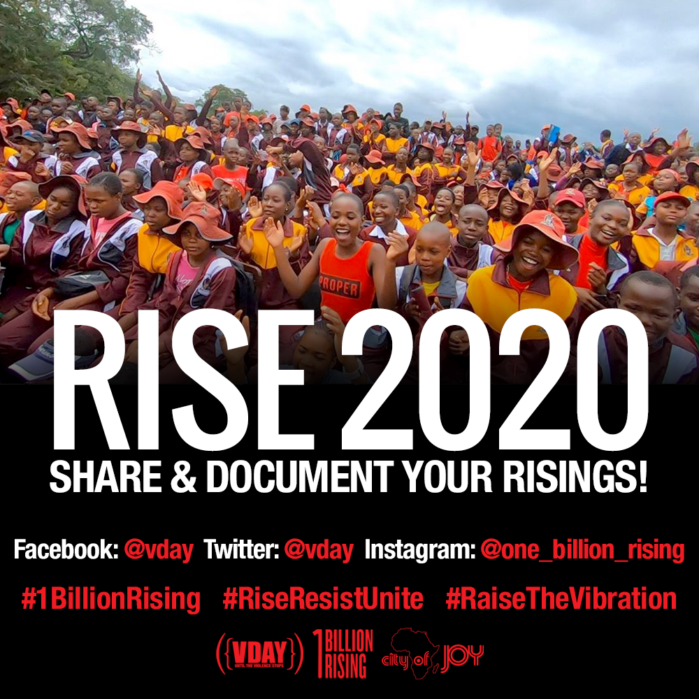 Over the past years, on or around 14 February, thousands of Risings took place around the world, in hundreds of cities, in virtually every country on earth. We have made history. In 2020, we RISE and RAISE THE VIBRATION and we want the world to witness every sight and sound of this extraordinary global action. HERE’S HOW!