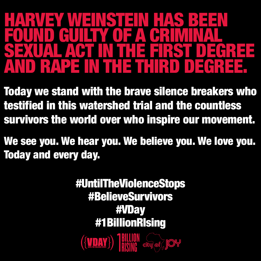 Two years after survivors broke the silence around Harvey Weinstein’s predatory behavior, Harvey Weinstein has been found guilty of criminal sexual acts and rape in New York.