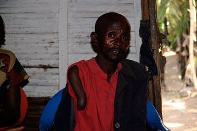 Our last stop is of course the most painful stop of my three weeks in the Congo. It is a small village only one-and-a-half hours outside of Bukavu, yet no one has been here to help the women survivors living there for years. The survivors ask to meet us. We gather in a small shack with one light bulb. There are thirty women and what I think is one older woman. In this shack I see and feel and hear stories that should make the world weak with shame and regret. I think to myself is it possible in the year 2009 in this village, in this shack that these stories could be told? One woman drops her shirt and shows me her stump of an arm which she lost when she was raped by many and then shot, another shows me her missing foot, another shows me the gunshot wounds in her arm. All the women have been raped many times. Some can hardly lift their heads. There were hard rains a few weeks ago and they all lost their homes so they are now living in the road. (V-Day gives them a grant for sheeting for new roofs). There is a 17-year-old girl nursing a baby born of rape. I ask how she feels about the baby and she says: “How can I not love my baby?” The baby is very sick and is getting smaller and smaller every day. Clearly, the baby has AIDS. If it is this bad this close to the city, I am frightened to think what it must be like for women deep into the forests. At the end, the person I think is an older woman speaks and it turns out to be a man. He was once a tailor. His name is Emanuel. The militias broke into his house. They forced him to rape his family, his children and his wife. Then they killed all of them. Then they raped him and forced him to carry things that were heavy. When he didn’t move fast enough they cut off his arm. He is the saddest man I have ever seen. He travels only with the women survivors, unable to forgive himself for what he did to his family. This is one shack in one village. There are thousands of these shacks all over Eastern Congo. The women are being destroyed. As Dr. Mukwege says, “this is Genocide. If you destroy all the women the Congolese people will not exist in years to come.”