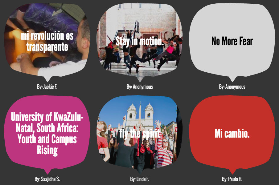 As ONE BILLION RISING REVOLUTION brings this global discussion to the forefront, we want to hear from YOU. SHARE your revolution through art, video, photos and words.