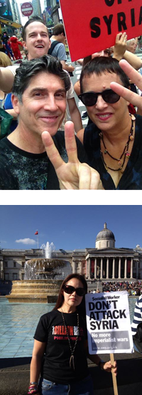 Today, we call on the U.S. to uphold the unconditional right of the Syrian people to self-determination, and we call on the world to oppose any U.S. military intervention in Syria. Experience shows us that military interventions harm innocent women, men, and children. Time and again we have seen how violence against women greatly increases in times of military conflict. We have seen how U.S. interventions in the past have led to more deaths and human rights violations against innocent people, and how aggression has not been a solution for conflict or restoration of security. We have seen how U.S. militarism wreaks havoc, killing and maiming local populations and leaving behind lasting problems. For example, we just received an update from Iraqi activist Yanar Mohammed stating that the Iraqi people are suing the U.S. government for white phosphorous that destroyed the limbs and minds of hundreds of their babies. How can we believe a U.S. military intervention will put an end to the use of chemical weapons when the U.S. is not taking accountability, responsibility, and ownership for its own use of chemicals? How can we, as a world community, be expected to accept this hypocrisy and double standard? Wadah Khanfar wrote in The Guardian on 2 September that “…a wide section of Islamic-linked Syrian revolutionaries will never welcome any major role for the US in the country’s future.”