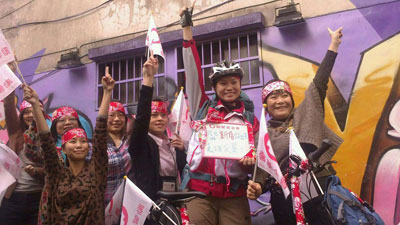 Activist Janelle Chung is currently cycling around Taiwan to get people dancing for One Billion Rising and to raise money for Garden of Hope women’s shelters, call centers, counseling programs & advocacy campaigns in Taiwan, the U.S., Cambodia, and South Africa!