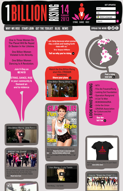 As we dance upon the path to ONE BILLION RISING, our email boxes are full of amazing stories, beautiful photos and messages of solidarity to RISE. Facebook is on fire with reasons to rise, and twitter is abuzz with thousands of tweets from South Africa to India.