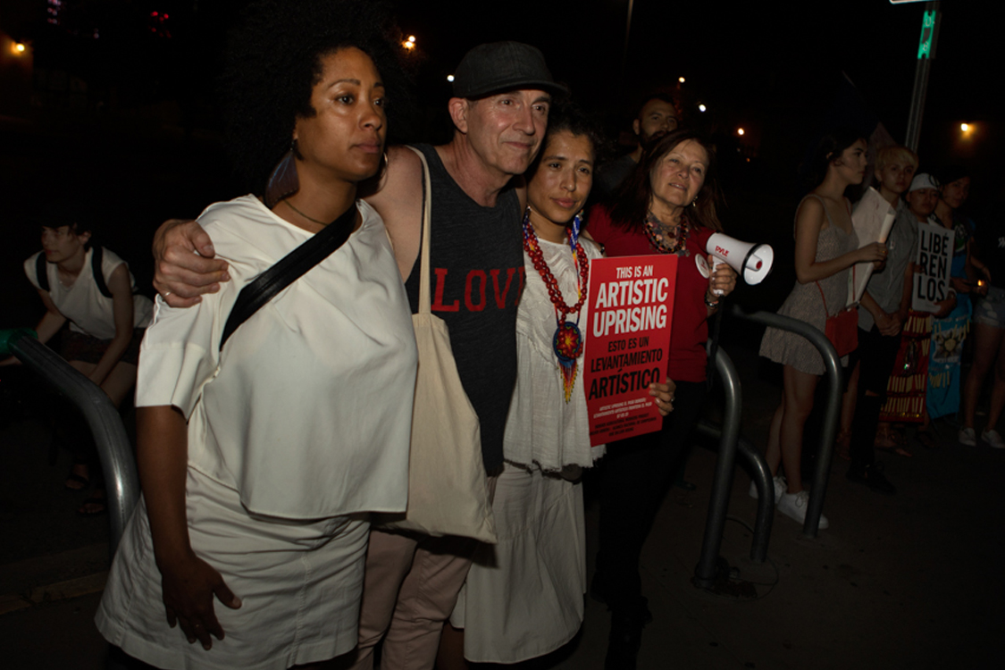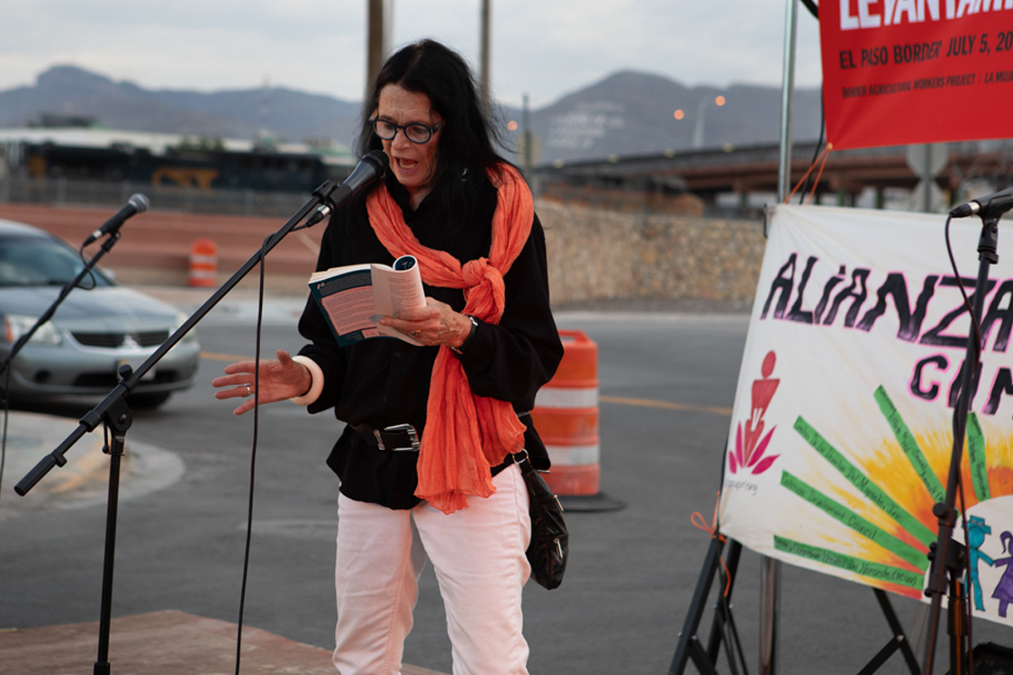Organizers put out a call to artists and activists everywhere to stand up for freedom, dignity, and the rights of immigrants and asylum seekers clinging on to survive under the diabolical inhumanity of the Trump administration’s immigration policies. Artists and activists from across the country and El Paso and Juarez brought their music, poetry, drums, words, passion, theatre, outrage, love, and brilliant calls to action – including writer Denise Chavez, playwright Eve Ensler, Alixa Garcia of Climbing PoeTree with Tonya Abernathy and Claudia Cuentas Oviedo, musician Amalia Mondragón, poet Rubi Orozco, journalist/organizer Rosa Clemente, playwright and Founder of The Trevor Project James Lecesne, Gabriel Mendez, Kelly Curry of CODEPINK, photojournalist Paula J. Allen, poet Anne Waldman, artist Sekou Luke, singer Morley, Border Agricultural Workers Project, Lorena Andrade of La Mujer Obrera, Mily Treviño-Sauceda of Alianza Nacional de Campesinas, Susan Celia Swan of One Billion Rising, Jennifer Nagda of the Young Center for Immigrant Children’s Rights, Alicia Rascon of The Center Against Sexual & Family Violence, Diane Wilson, MAKS, poets Tongo, Michelle Mush Lee, Dominic Chacón, Gris Muñoz, Anne Talhami, and Anju Kasturiraj, readings by Veronica Frescas and Ela Banerjee, musicians Ceiba and Chris Davis, Aztec dance group Danza Omecoatl, and fire dancer Jacqueline Barragan.