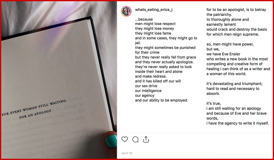 Yet, we haven’t seen men move into the process of true apology. Of reckoning with their actions and moving towards accountability and transformation. Until now.