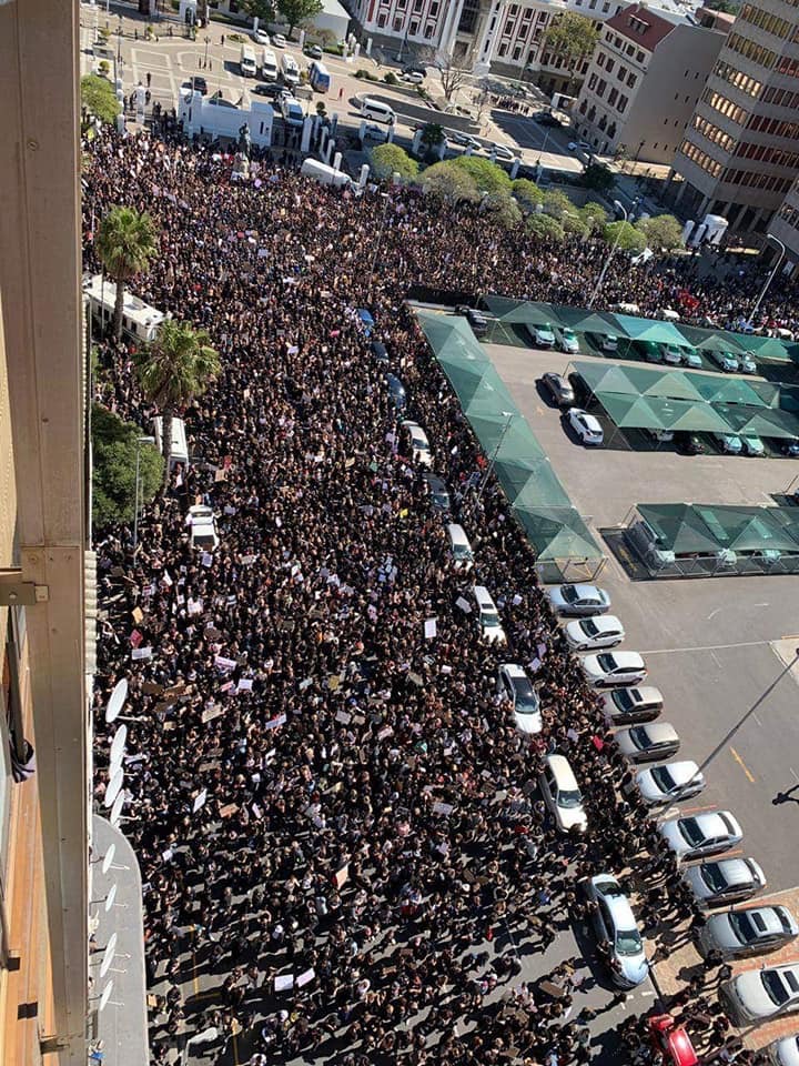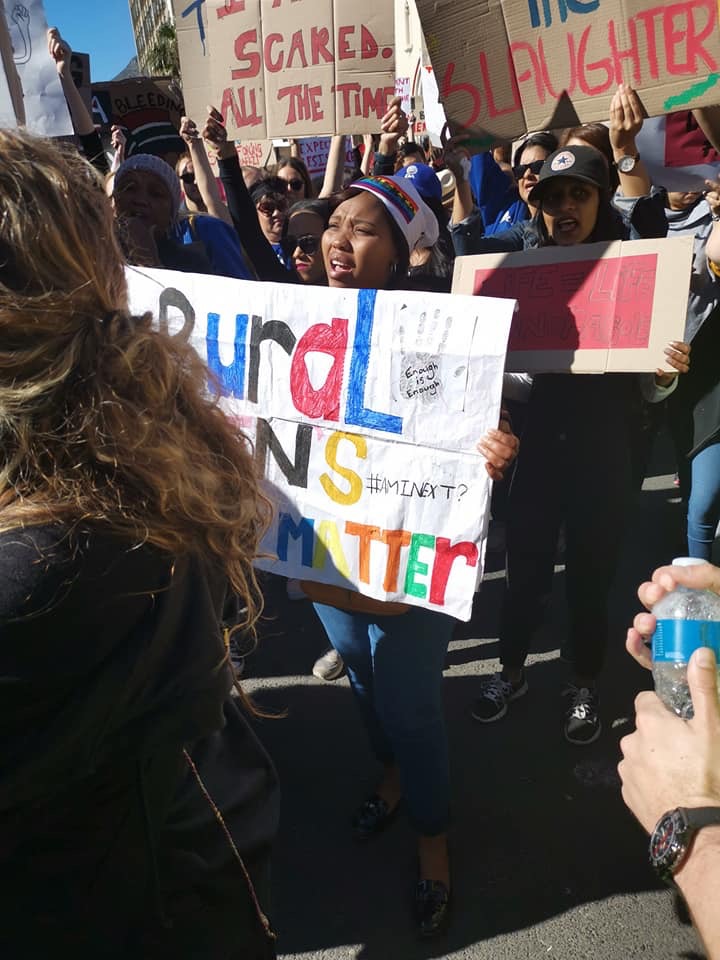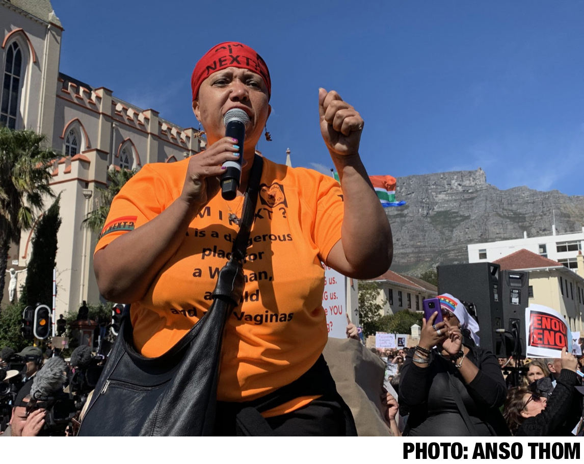 “If this government fails to protect us, we, as the women of South Africa, will take them to the constitutional court,” Evans yelled as the crowd cheered.