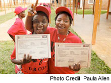 On January 28, V-Day and the Fondation Panzi (DRC) celebrated the first graduating class of City of Joy in Bukavu, Democratic Republic of Congo (DRC). City of Joy, a revolutionary community for women survivors of gender violence, opened its doors to the pilot class of 42 women this summer. Long time V-Day activists and renowned photojournalist Paula Allen joined V-Day staff and supporters to witness and celebrate the graduation ceremony of this first incredible class. Today we are pleased to share with you Paula’s gallery of images from the event, which brilliantly capture the joy and excitement around the festivities.