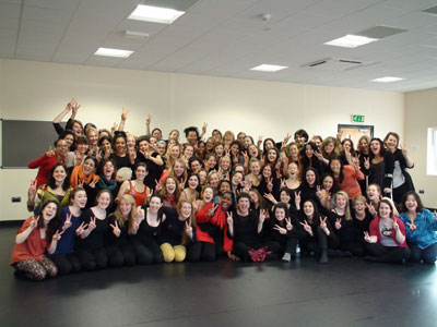 On November 24th, Eve Ensler led a V-Girl workshop at the East 15 Acting School with over 80 girls from all over the UK and 22 countries around the world. The students were 1st year BA students in acting and contemporary theatre, and MA postgraduate acting students.