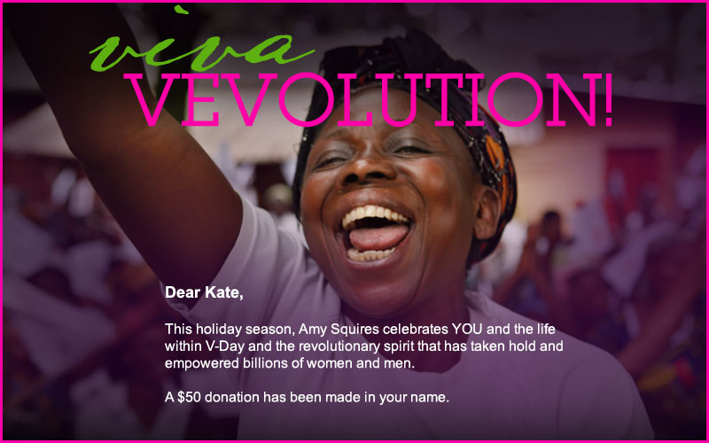 At this time of year-end thanks and reflection, we are also so pleased to share with you Viva Vevolution!, V-Day’s annual report, which documents an incredible and unique year in our movement.
