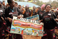 Women builders of the City of Joy dancing at the opening