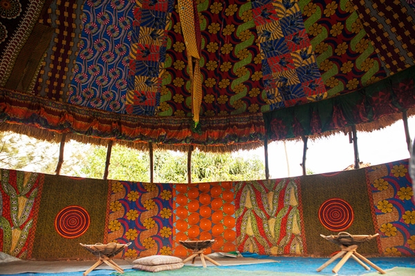 A meditation hut has been erected where the perfect breeze wafts through layers of stunning tapestry… There are silent zones to pause and reflect and feel peace.