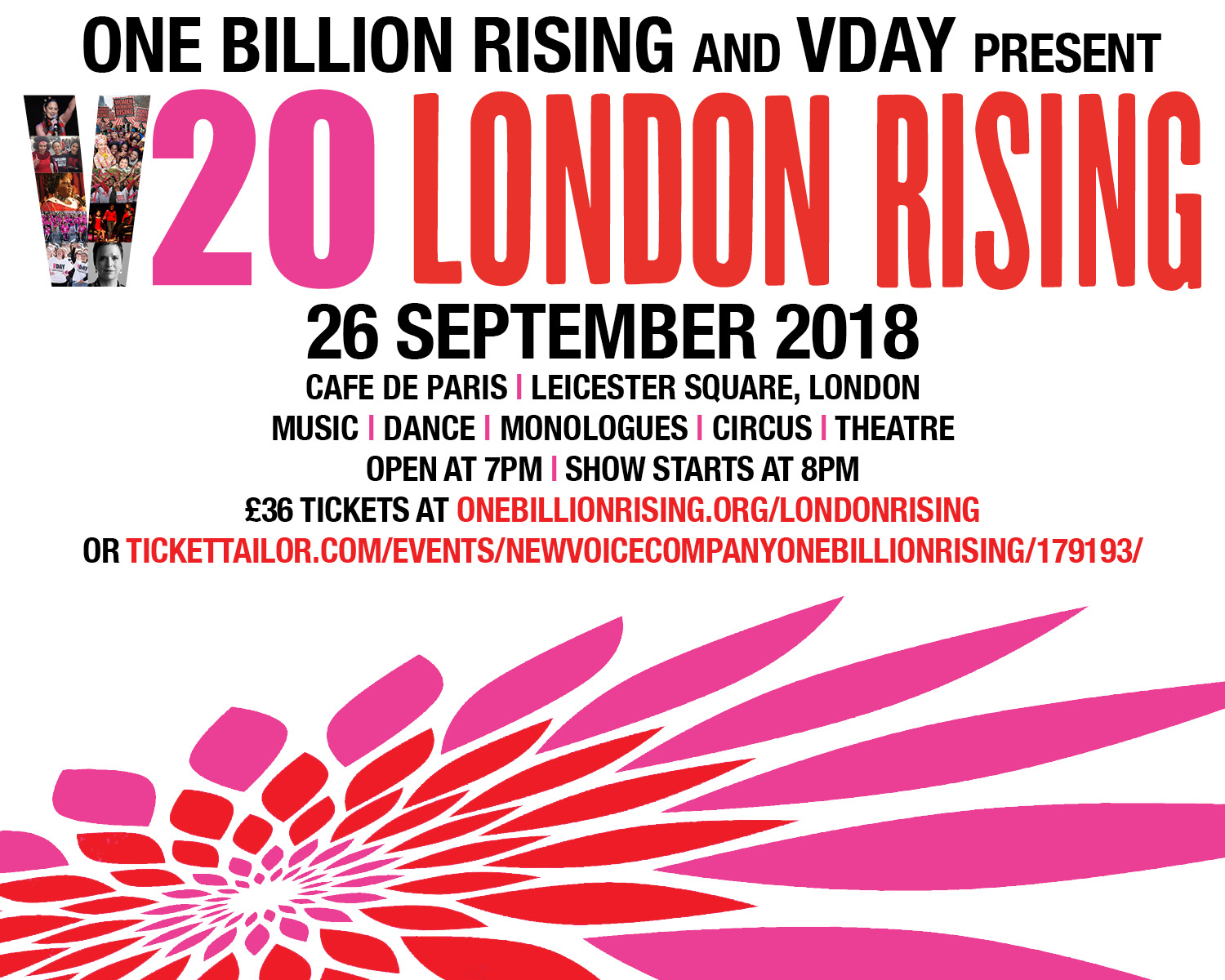 To mark the 20th anniversary of The Vagina Monologues and V-Day, One Billion Rising and V-Day are calling on activists in London to Rise, Resist, and Unite for a special evening at Café De Paris on 26 September.